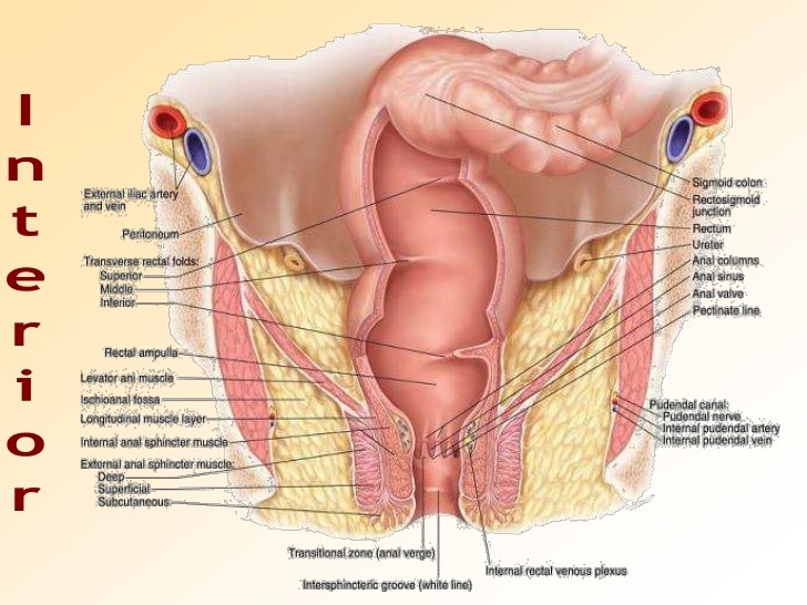 α) έρχεται σε στενή συνάφεια με όργανα της περιοχής όπως η ουροδόχος κύστη και η ουρήθρα, ο προστάτης και οι σπερματοδόχες κύστεις στους άνδρες και η μήτρα και ο κόλπος στις γυναίκες.